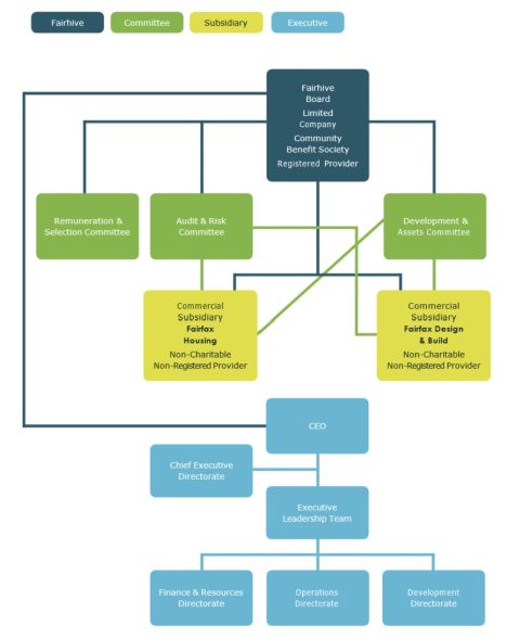 Below is an organisation chart showing Fairhive’s governance and executive structure.